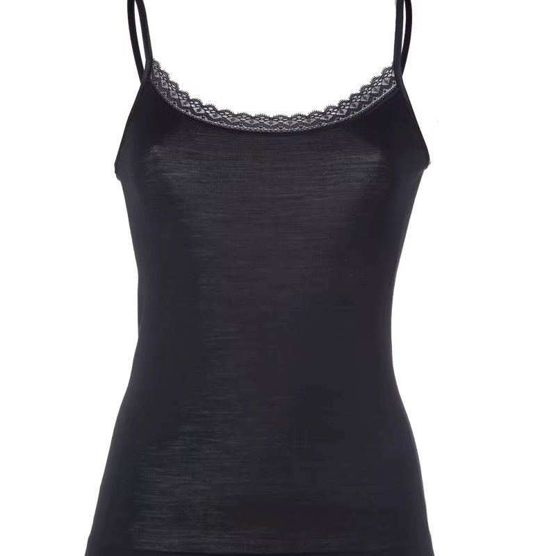 Camisola de mezcla de lana y seda Tina SS con ribete de encaje francés para mujer, hecha en Italia