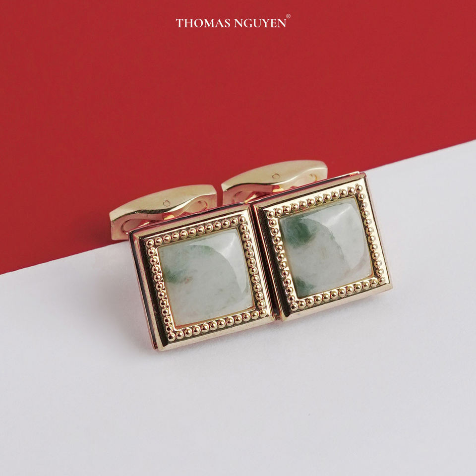 Colección Tinh Vu: Gemelos de Lujo para Hombre, Chapados en Oro de 18K, con Piedra Preciosa de Jadeíta Fengshui (MSDAXL006) - Hecho en Vietnam