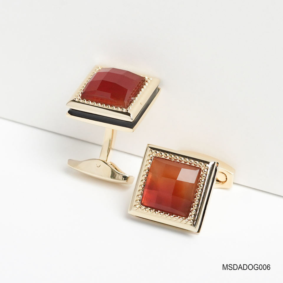 Colección Tinh Vu: Gemelos de Lujo para Hombre Chapados en Oro de 18K - Piedra Preciosa de Ágata Roja Facetada Fengshui (MSDADOG006) - Hecho en Vietnam