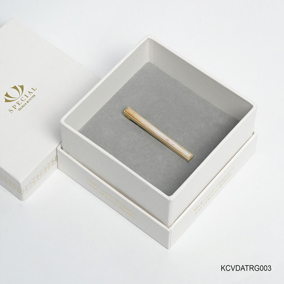[Tinh Vu Collection] Clip de Corbata de Lujo para Hombre, Chapado en Oro de 18K - Piedra Preciosa de Ágata Blanca Facetada Fengshui (KCVDATRG003) - Vietnam