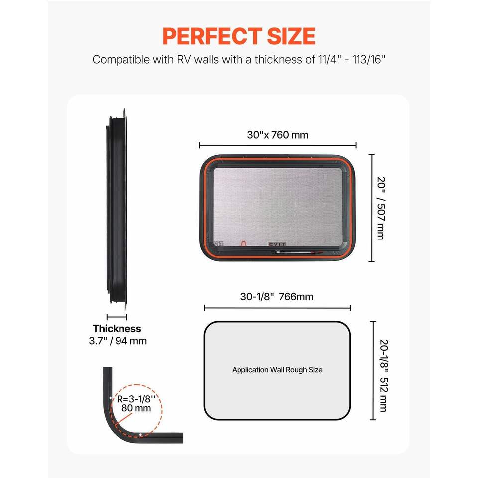 Ventana tintada para RV con anillo de embellecimiento para mosquitera, 30 pulgadas de ancho x 20 pulgadas de alto, compatible con paredes de 1 1/4 pulgadas y 1 13/16 pulgadas de grosor, accesorio para ventana de RV