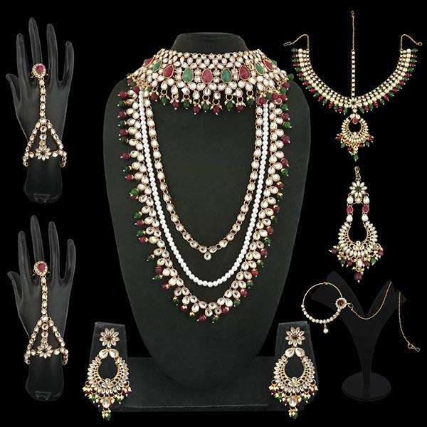 Tip Top Fashions 1002387C Conjunto nupcial Kundan chapado en oro con perla y circón para bodas Fiestas Regalos Conjuntos de joyería fina