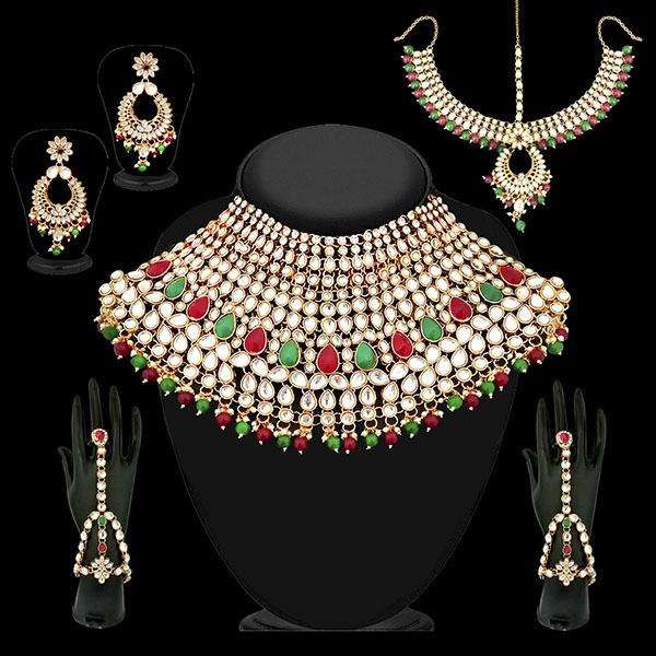 Tip Top Fashions 1002390C Conjunto nupcial Kundan chapado en oro Joyas de perlas finas con diamantes de imitación y circón para fiestas