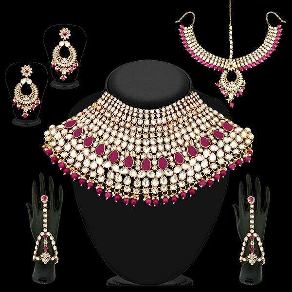 Tip Top Fashions Kundan Bridal Set 1002390B-Maroon Beads Gold Plated Leaf Pattern Pearl con pendiente Joyería fina para regalos