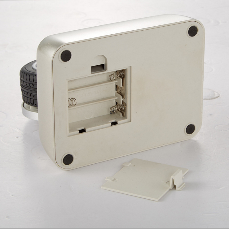 Reloj despertador estilo carrera con sonidos de coche y mensaje “¡Buenos días!”