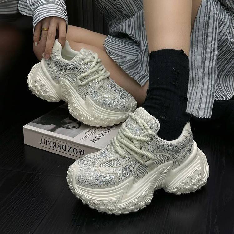 Zapatos de suela de neumático Hot Diamond dad para mujer 2024 nuevos zapatos deportivos informales de fondo grueso y delgados transpirables