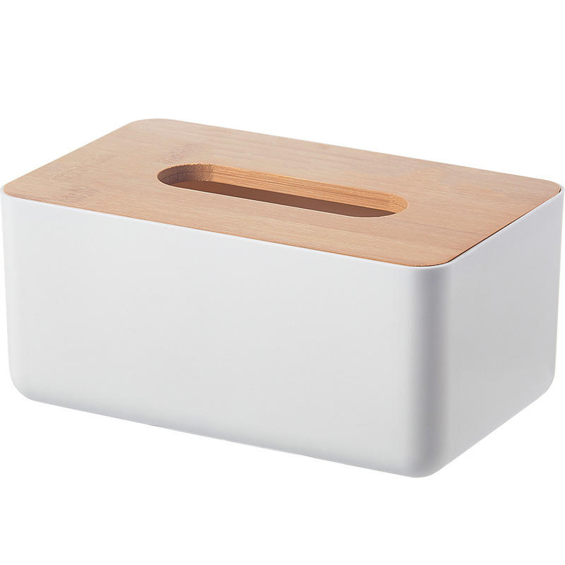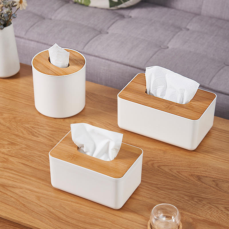 Caja de pañuelos con tapa de bambú, organizador de almacenamiento multifuncional para sala de estar, escritorio, uso doméstico