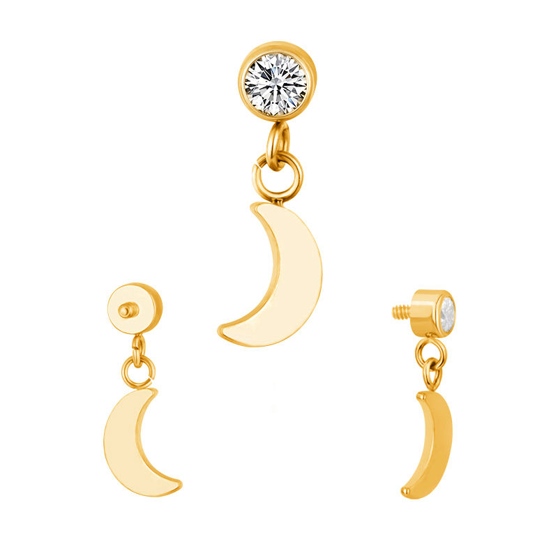 Juego de bisel de titanio CZ con colgante de Luna 16G Rosca interna Labert Helix Earring Top