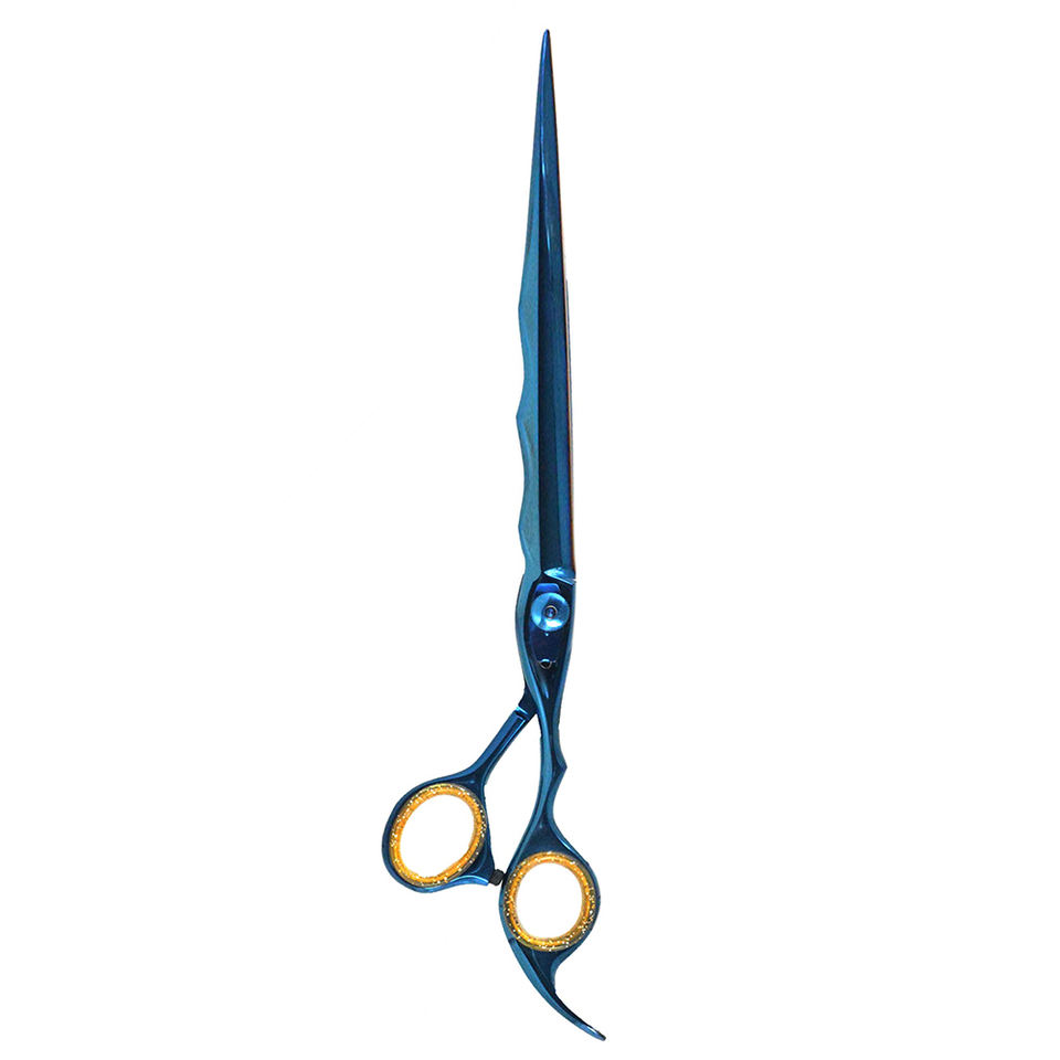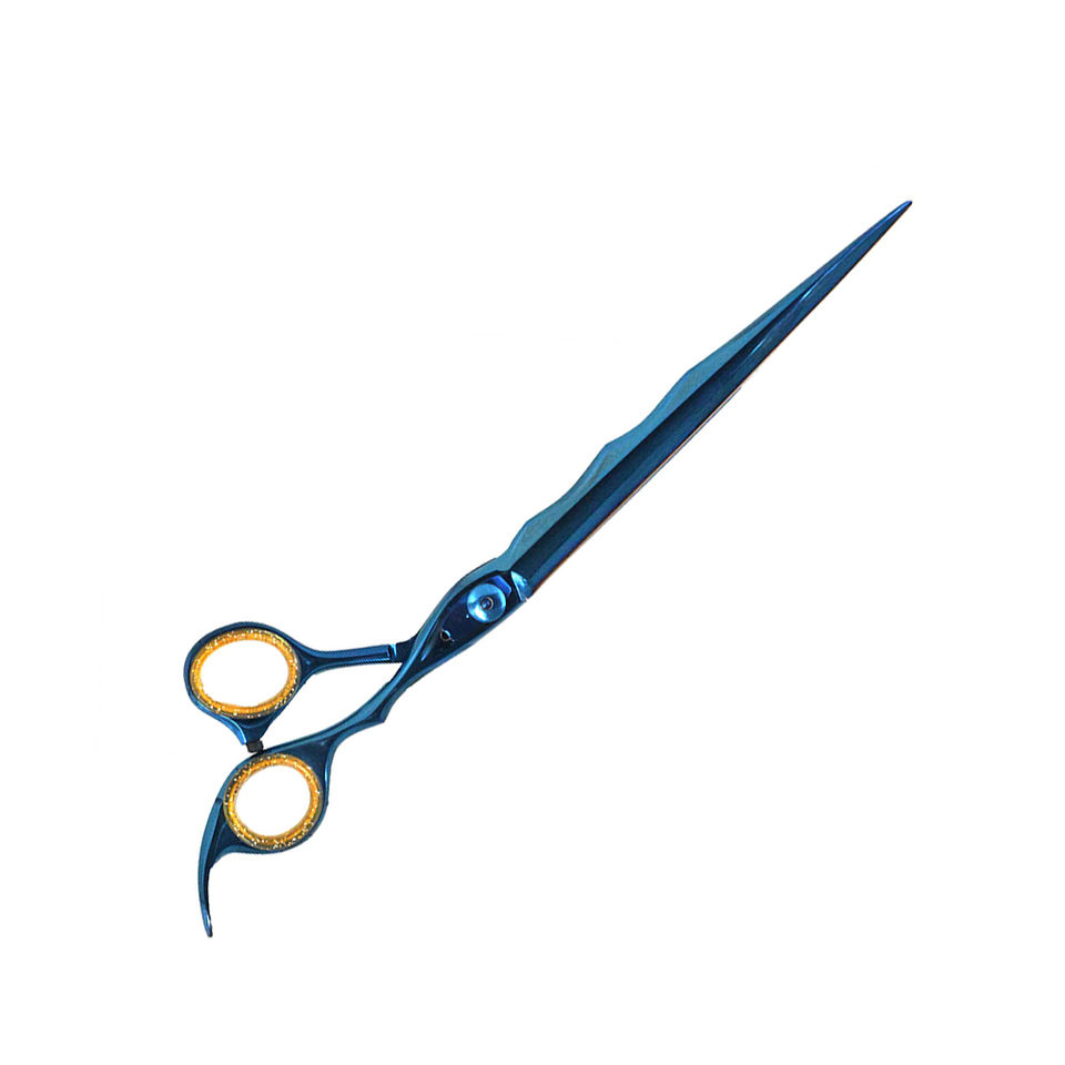 Tijeras de aseo para mascotas de color azul titanio, cuchillas rectas afiladas, tijeras de pulido de espejo para diestros
