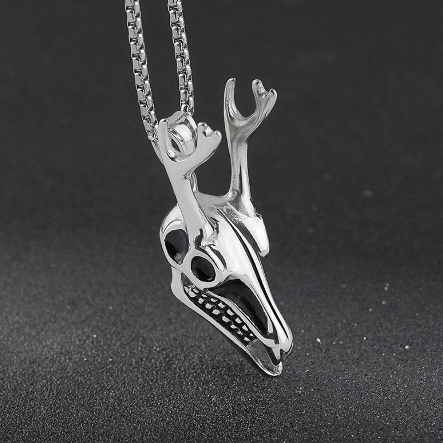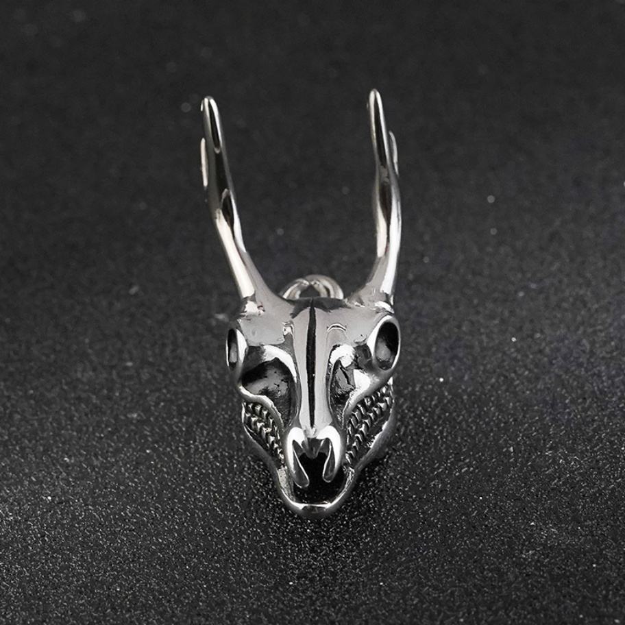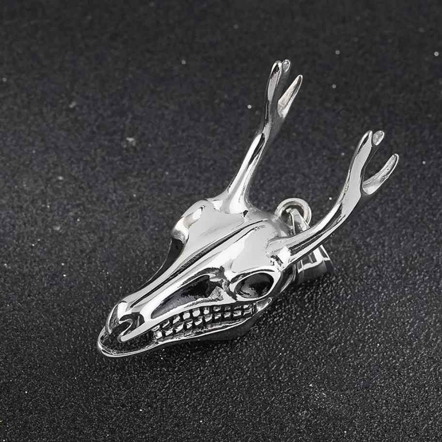 Colgante de Calavera Gótica de Titanio, Estilo Retro, para Hombre, Diseño de Cabeza de Ciervo, Cuerno de Buey, Unisex, para Fiestas, Cristiano, Acero Inoxidable 316L
