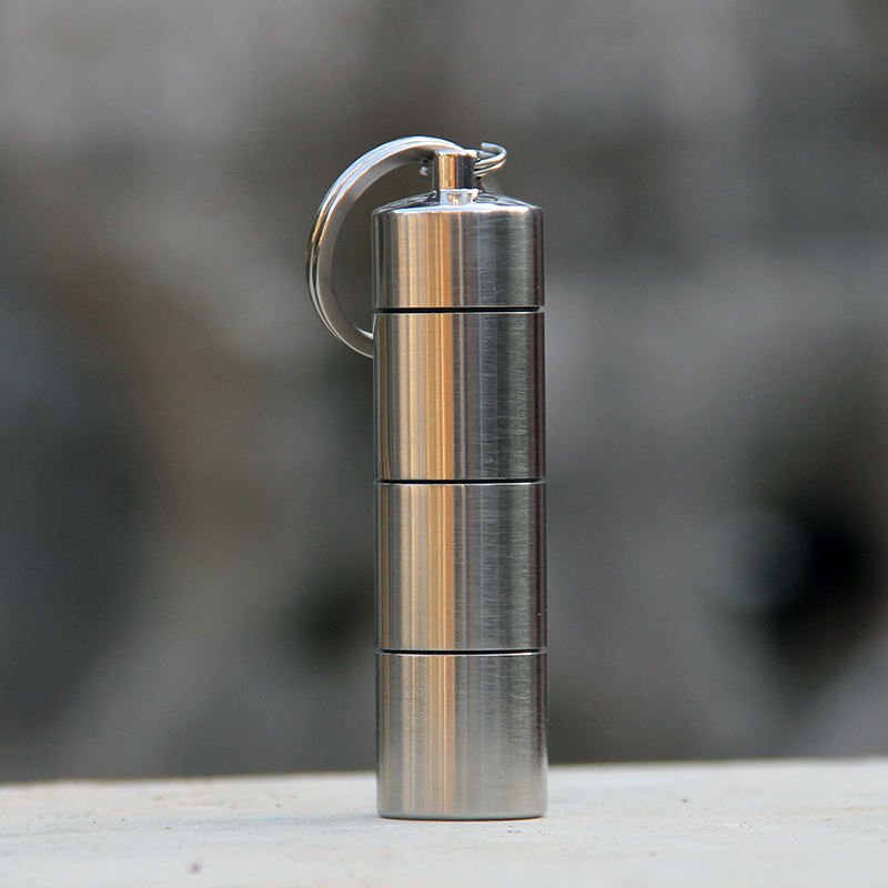 Porta Pastillas de Titanio para Llavero, Compacto, Impermeable, con 3 Compartimentos, Estuche Pequeño para Medicamentos, para Uso Diario y Viajes