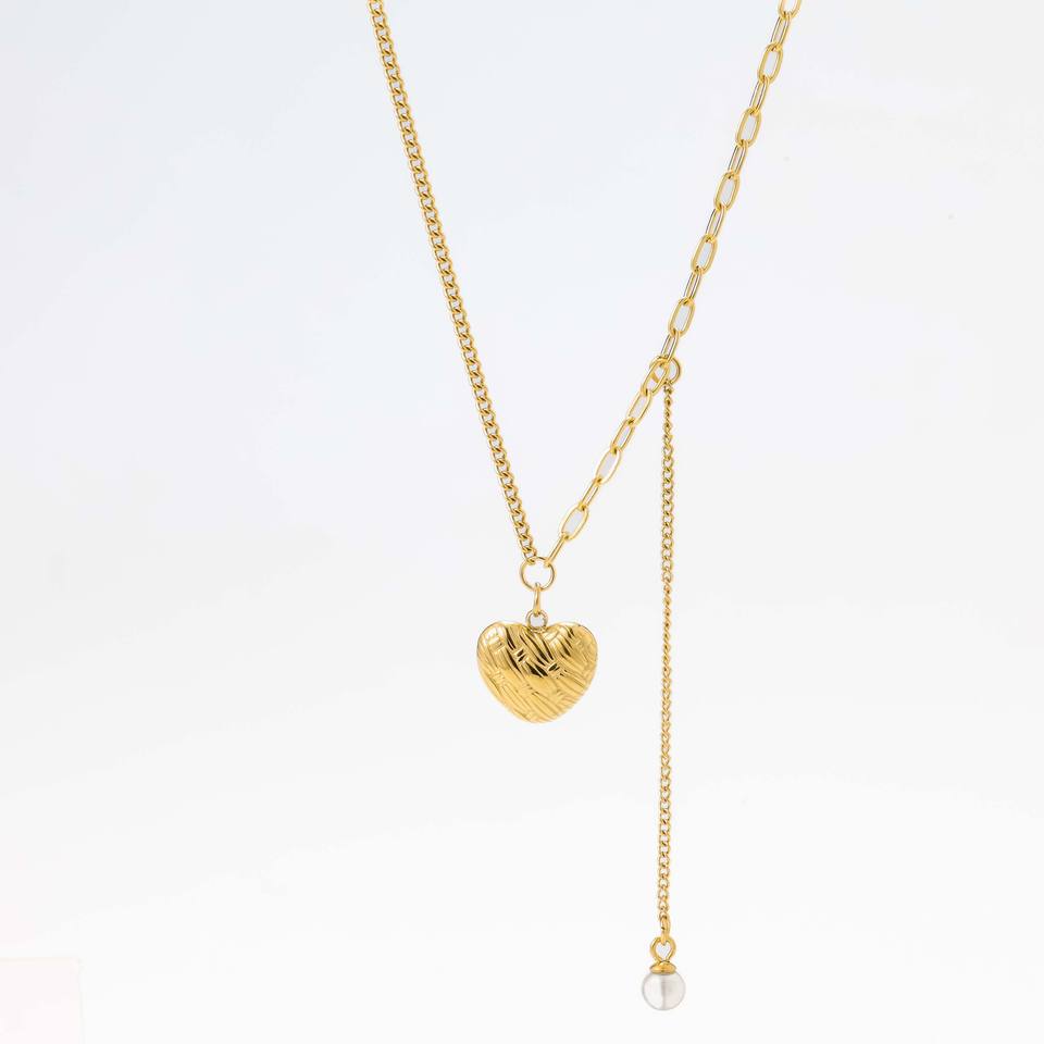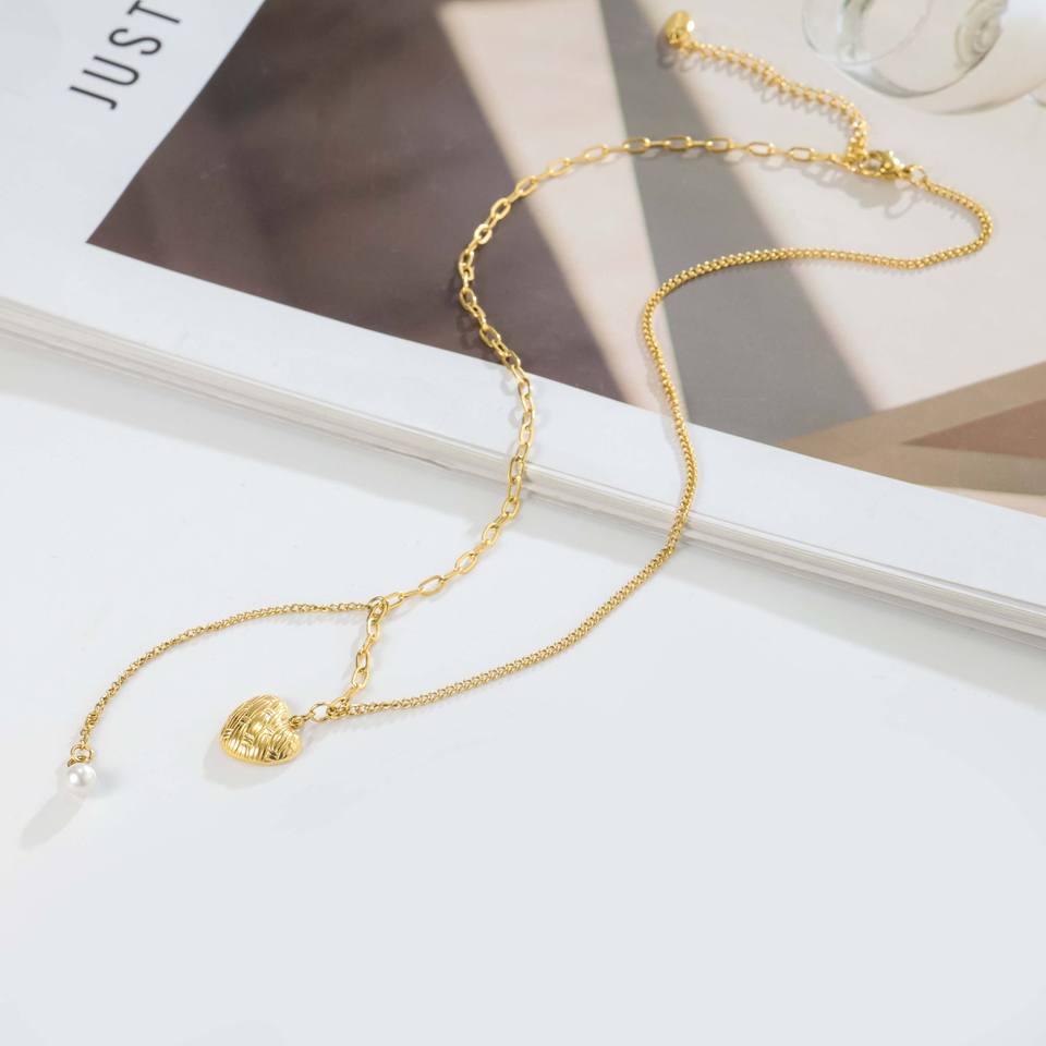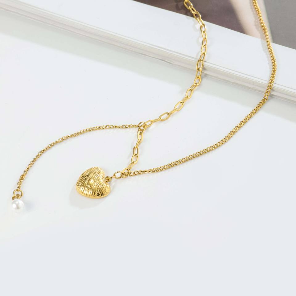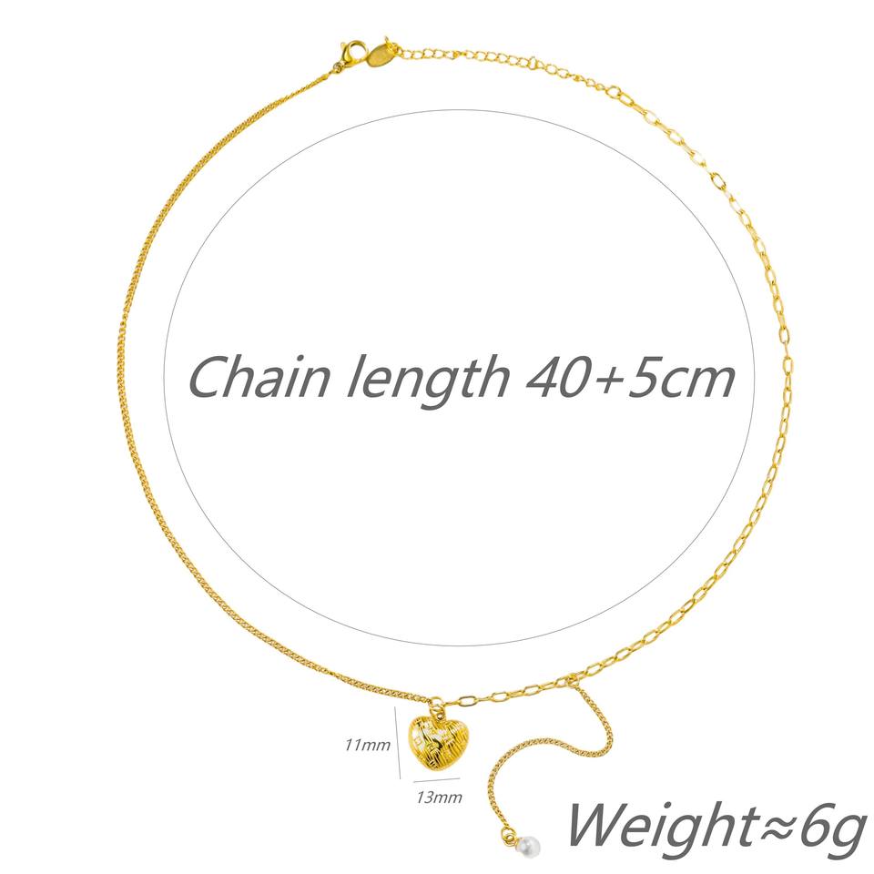 Collar de Doble Capa de Acero Inoxidable Chapado en Oro de 18K con Corazón y Perla - Lujo Ligero para Fiestas y Uso Diario