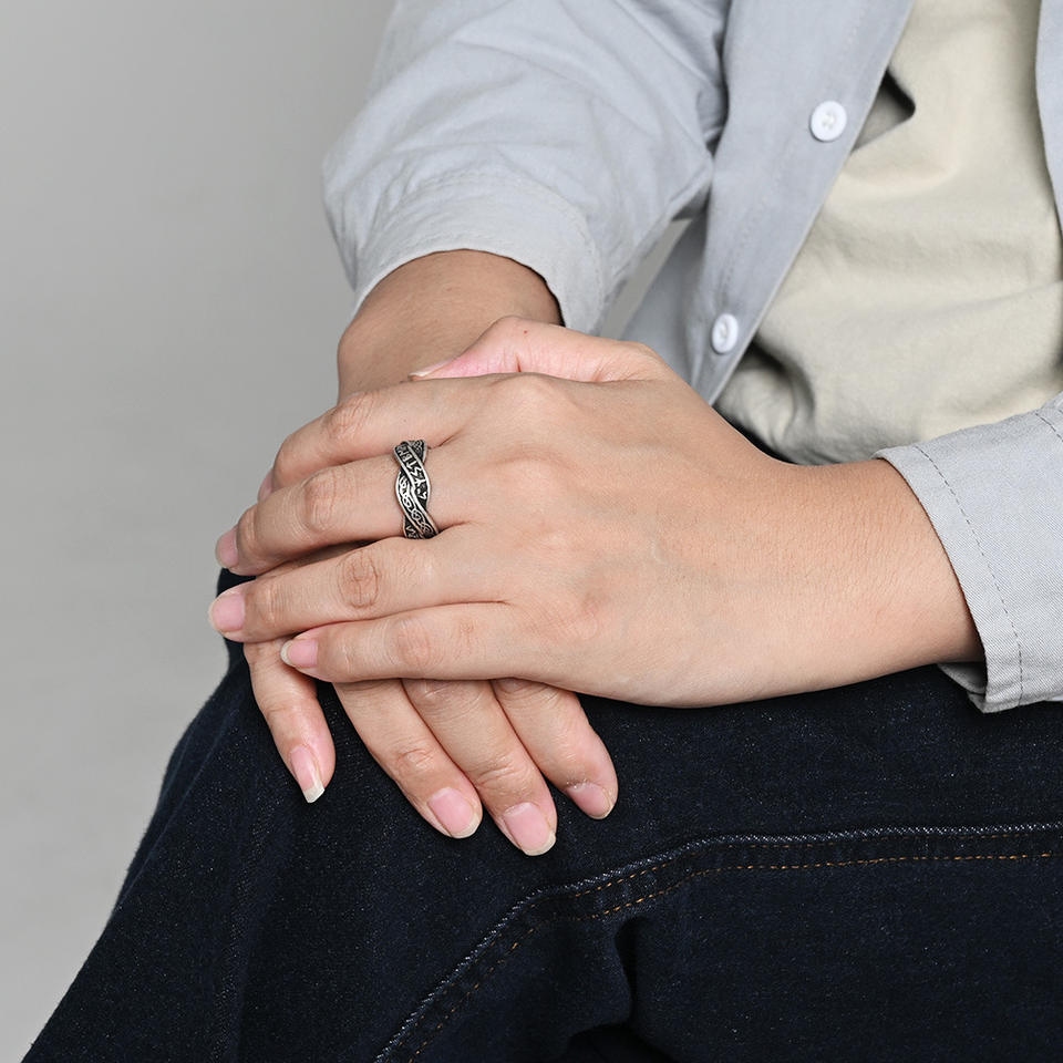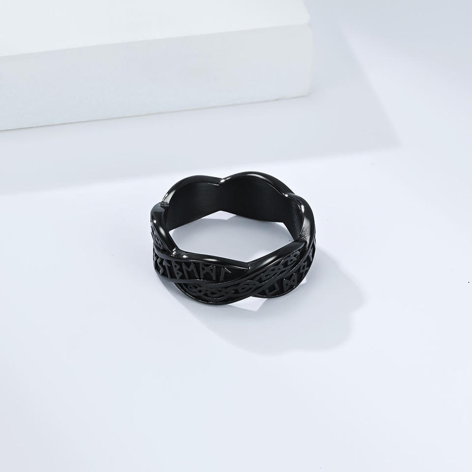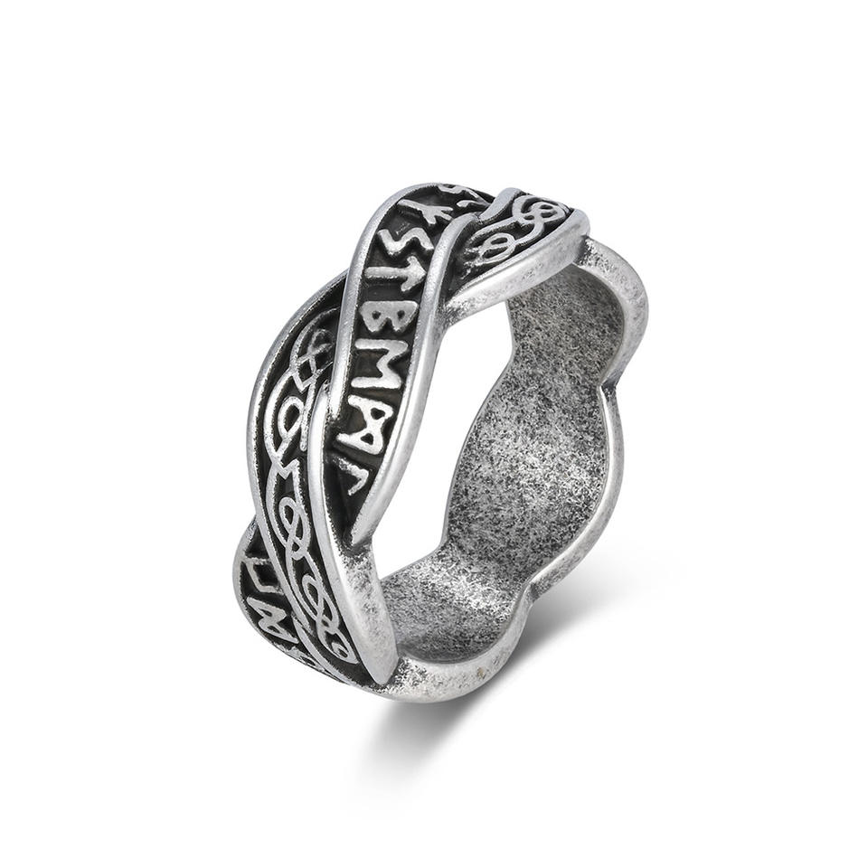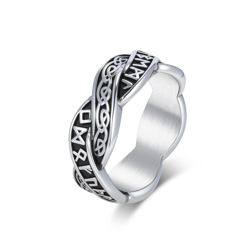 Anillo de Eternidad Entrelazado de Acero de Titanio, Estilo Nórdico Vintage, Inspirado en las Runas Vikingas, Diseño Artístico Unisex para el Dedo Índice