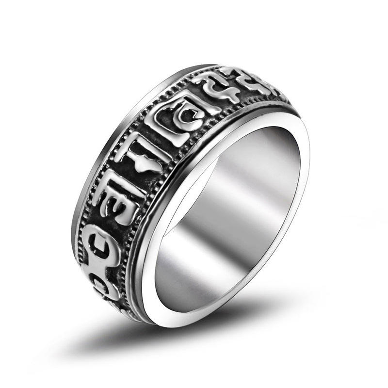 Anillo Punk de Acero de Titanio con Mantra de Seis Sílabas, Joyería Antigua Unisex, Moda para Fiestas SA343