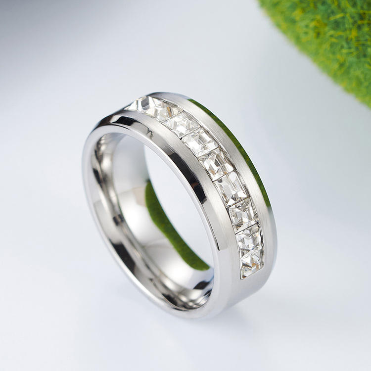 Anillo de Acero de Titanio de 8mm con Diamantes Engastados en Canal, Joyería de Moda Unisex, Regalo, Anillo para el Dedo Índice, Oro Rosa, Negro, Plata