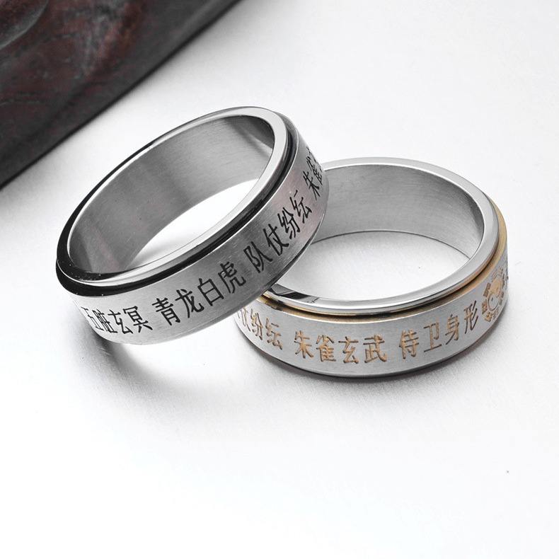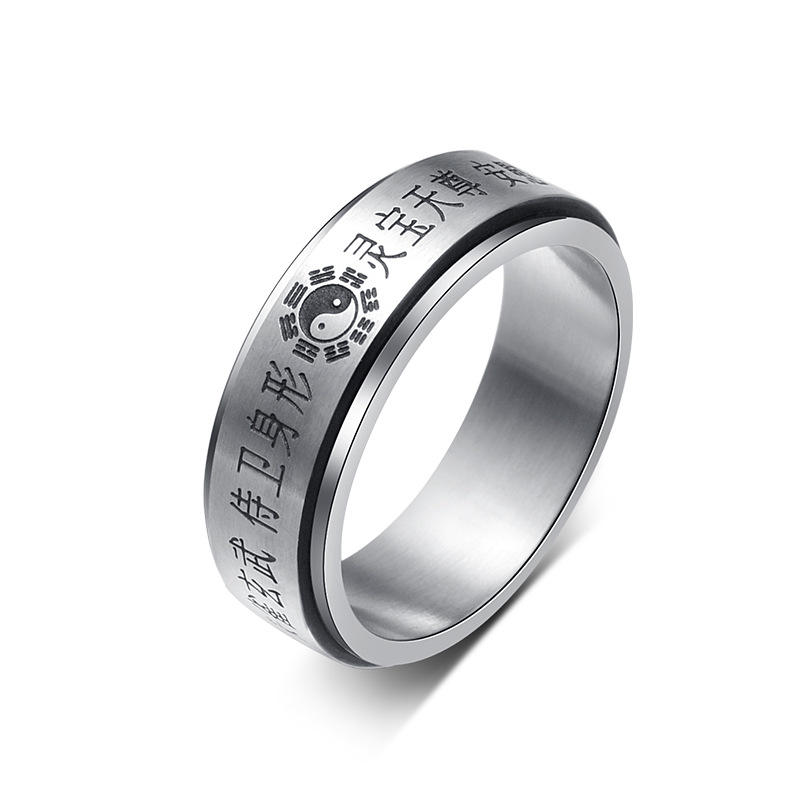 Anillo giratorio de acero de titanio con caracteres chinos, símbolo Yin Yang, regalo de joyería de moda unisex