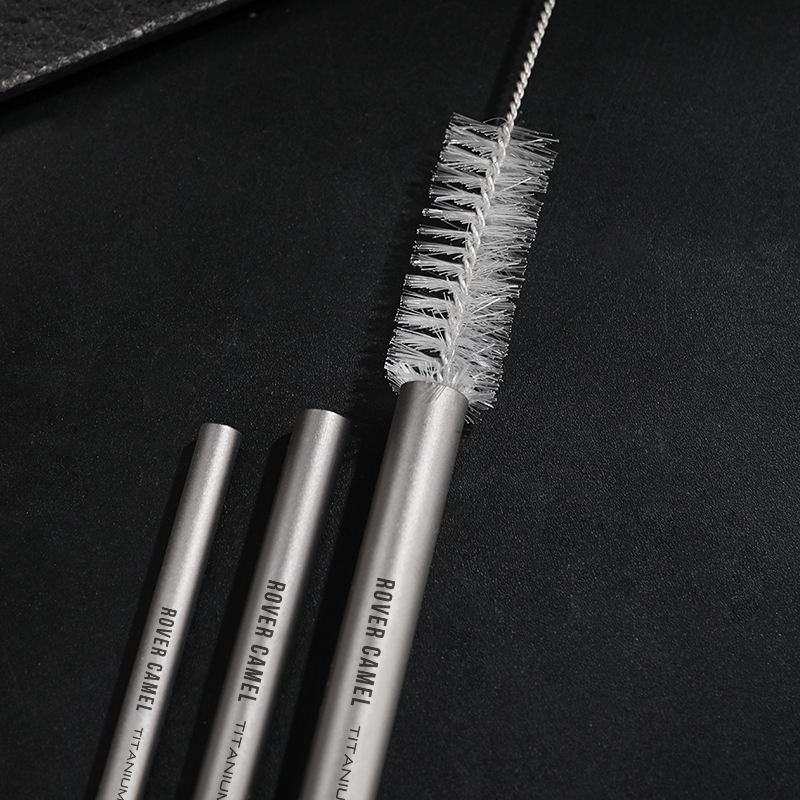 Pajita de Titanio Súper Resistente y Ultraligera con Cepillo de Limpieza, Pajita Metálica Duradera y Reutilizable