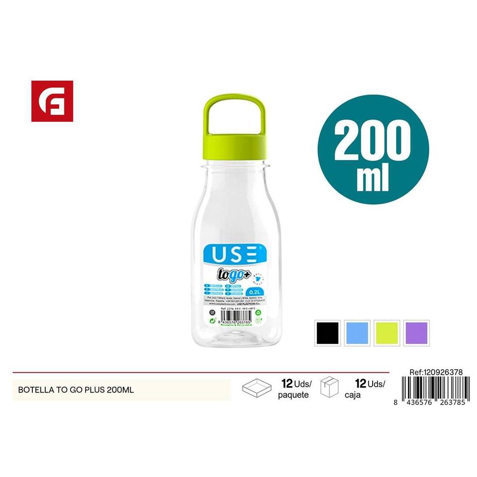 To Go Plus 200ML Botella de plástico para bebidas Tamaño de viaje conveniente