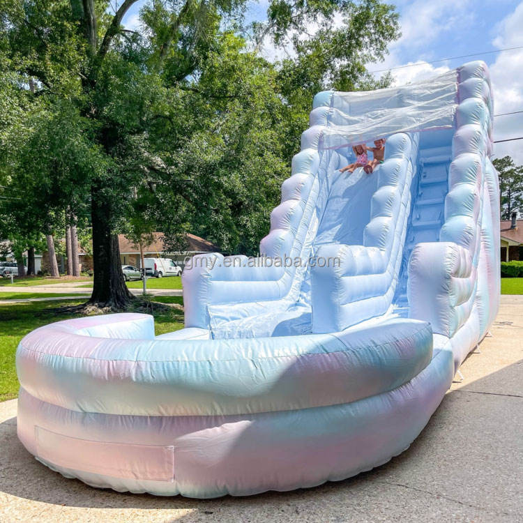Tobogán Inflable Azul Tie Dye Grande de Doble Carril, Tobogán Acuático Inflable de Grado Comercial