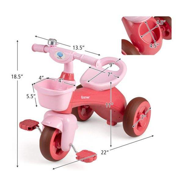 Triciclo Infantil con Estructura Triangular para Niños de 3 a 5 Años, con Cestas de Almacenamiento Delanteras y Traseras, Estable