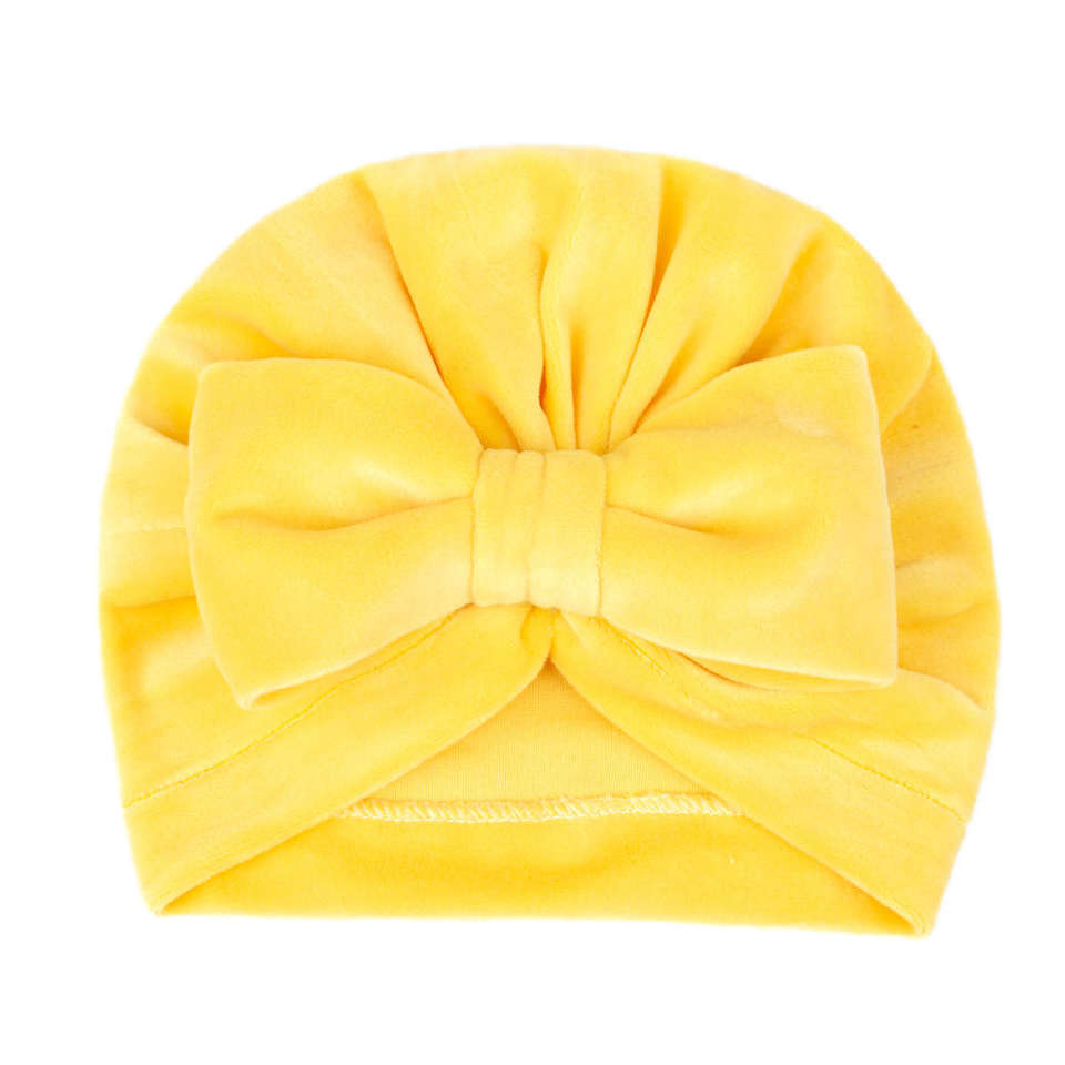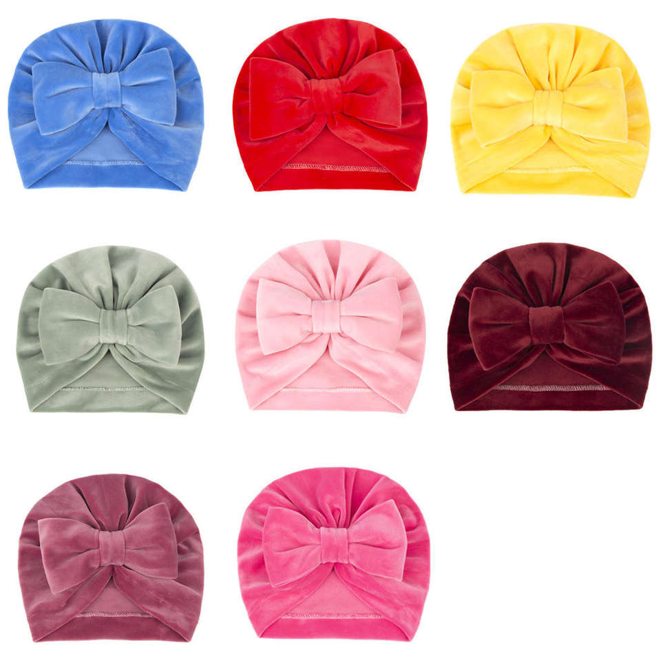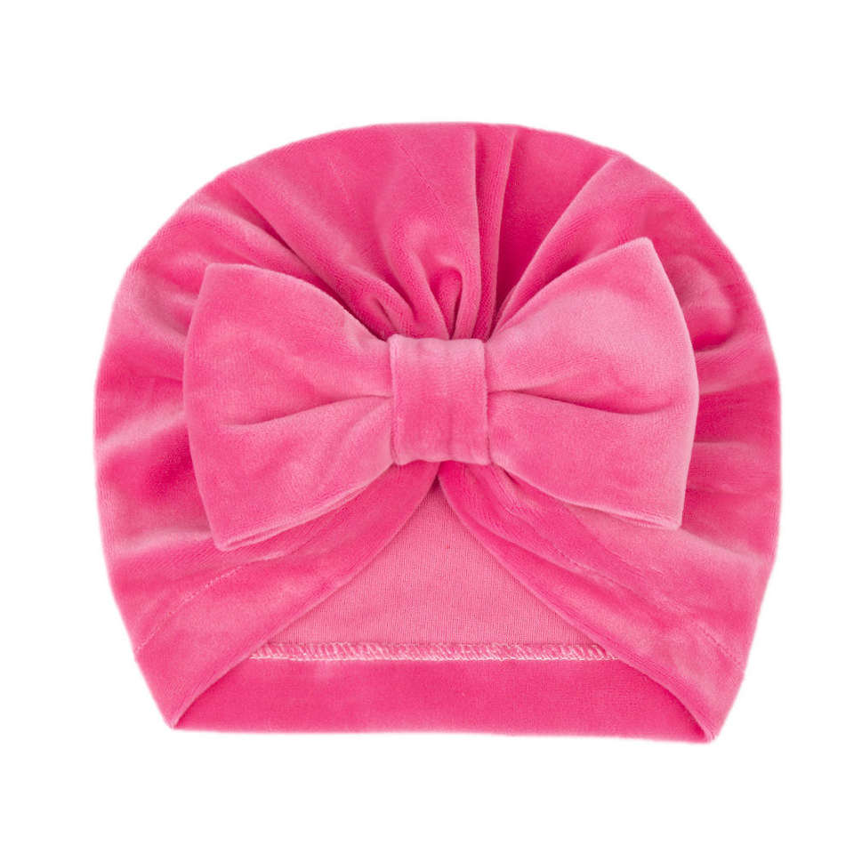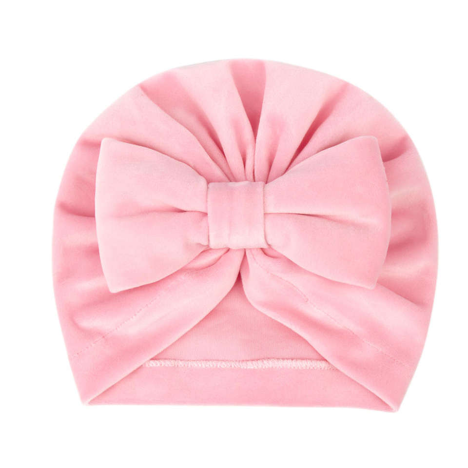 Niño al por mayor invierno cálido cristal terciopelo bebé turbante sombrero pulóver sombrero suave arco pañuelo sombrero bebé