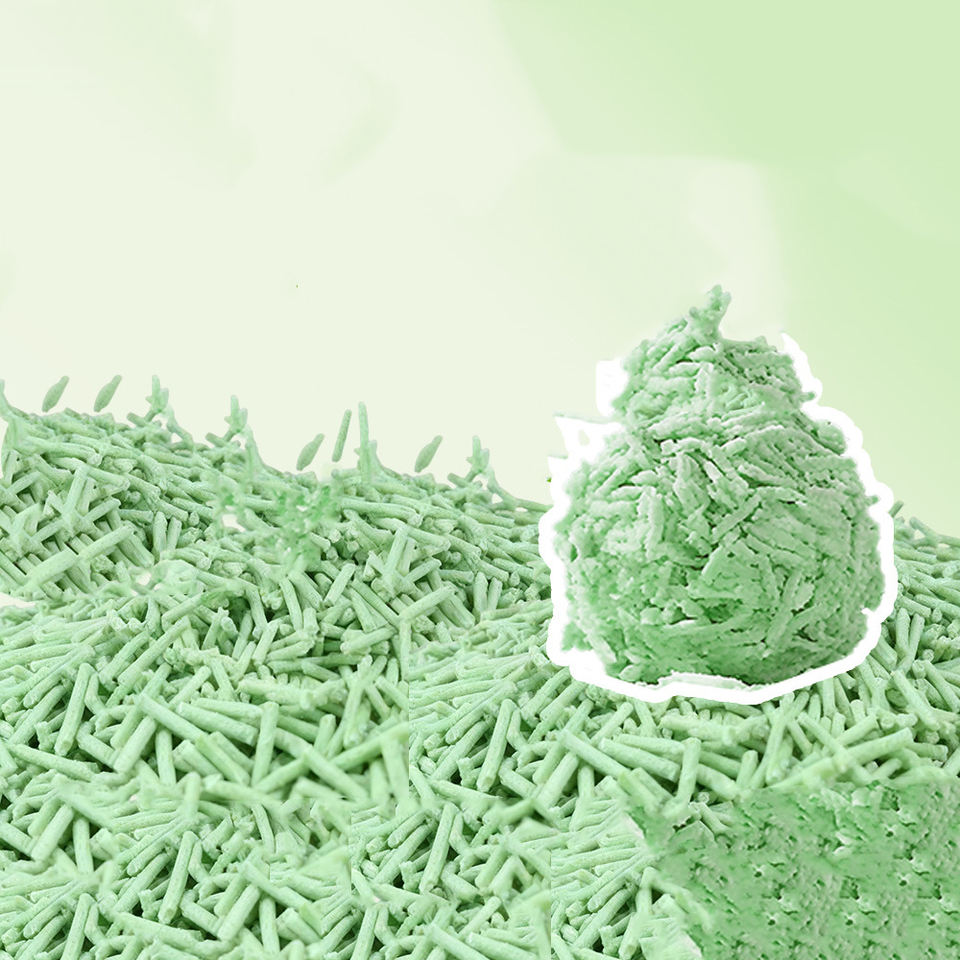 Biodegradable, Respetuoso del medio ambiente, Libre de polvo, aglomerante rápido, altamente adsorbente, Flushable, control de olores, Control adicional del olor, 99% libre de polvoCaracterística