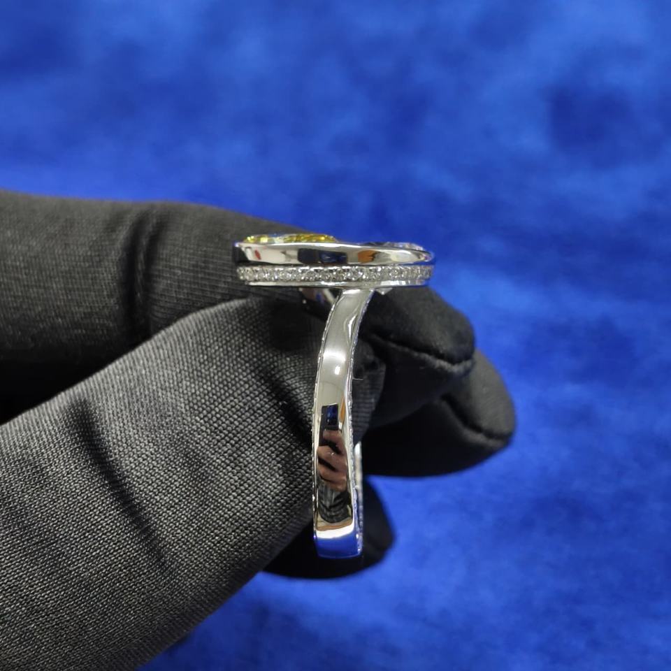 Anillo de compromiso de diamantes cultivados en laboratorio Toi Et Moi, corte pera, color canario, engaste de oro amarillo con halo oculto de doble cara, certificado IGI, para boda