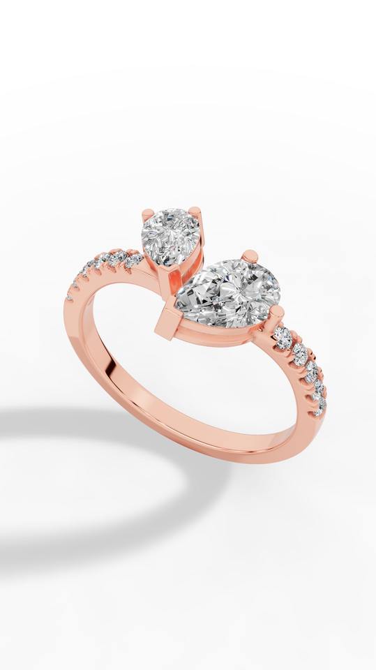 Anillo de Diamante Cultivado en Laboratorio con Corte de Pera Toi Et Moi, Oro de 10K, Fabricante y Proveedor de Joyería Fina al por Mayor OEM