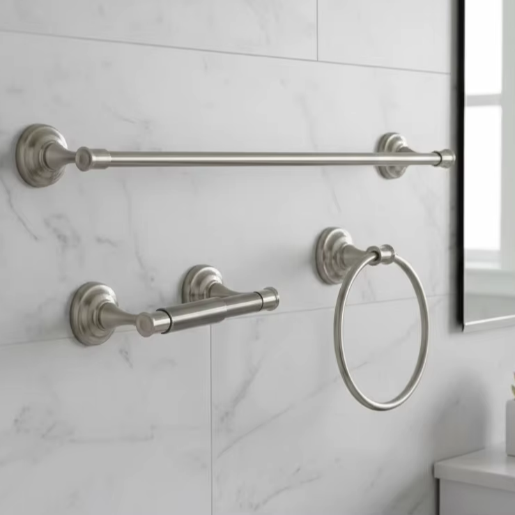 Portarrollos de Papel Higiénico con Accesorios y Toallero Clásico de Jardín, Portarrollos de Papel Higiénico, Anillo para Toallas, Niquelado