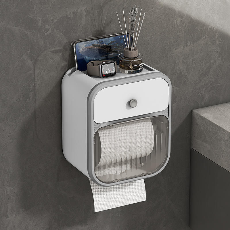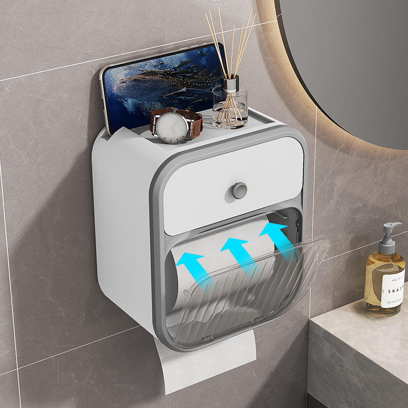 Caja de papel higiénico sin punzonado soporte de papel higiénico caja de almacenamiento de inodoro doméstico soporte de rollo de papel montado en la pared cajón de papel