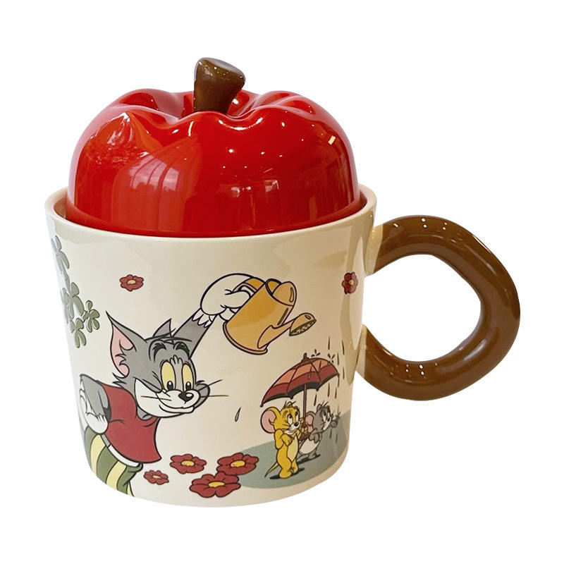 Taza de cerámica Tom y Jerry con tapa, diseño de dibujos animados, para oficina, hogar, regalo