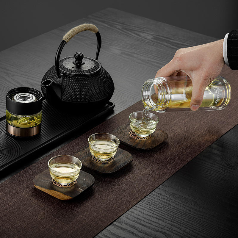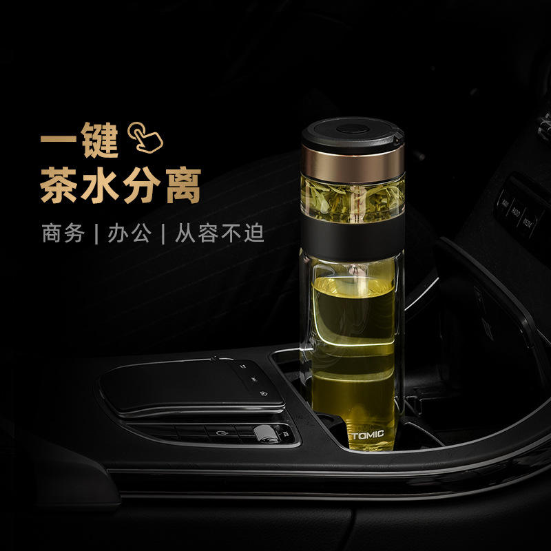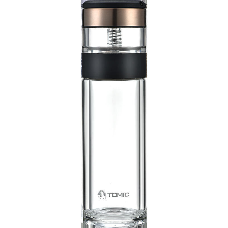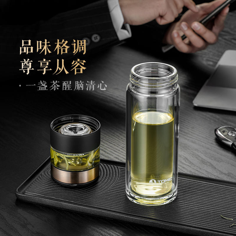 Taza con infusor de té Tomic, vidrio de doble capa, separador de té plateado portátil para hombres, regalo de negocios