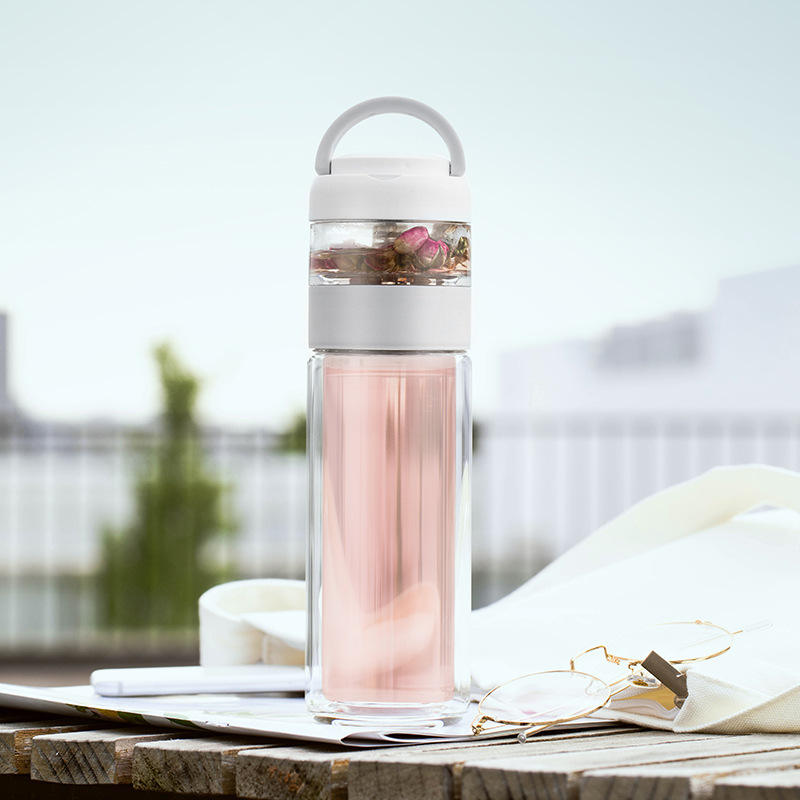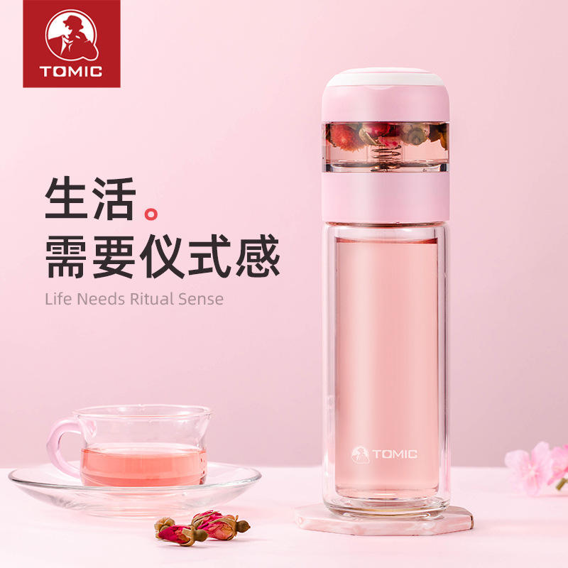 Taza de vidrio con infusor de té Tomic, doble capa de borosilicato de alta resistencia con filtro con interruptor para separar el té del agua