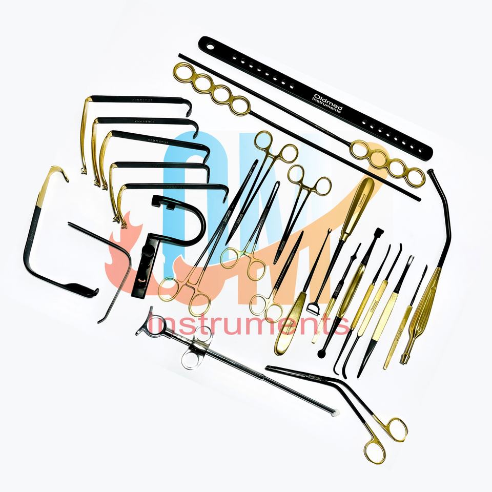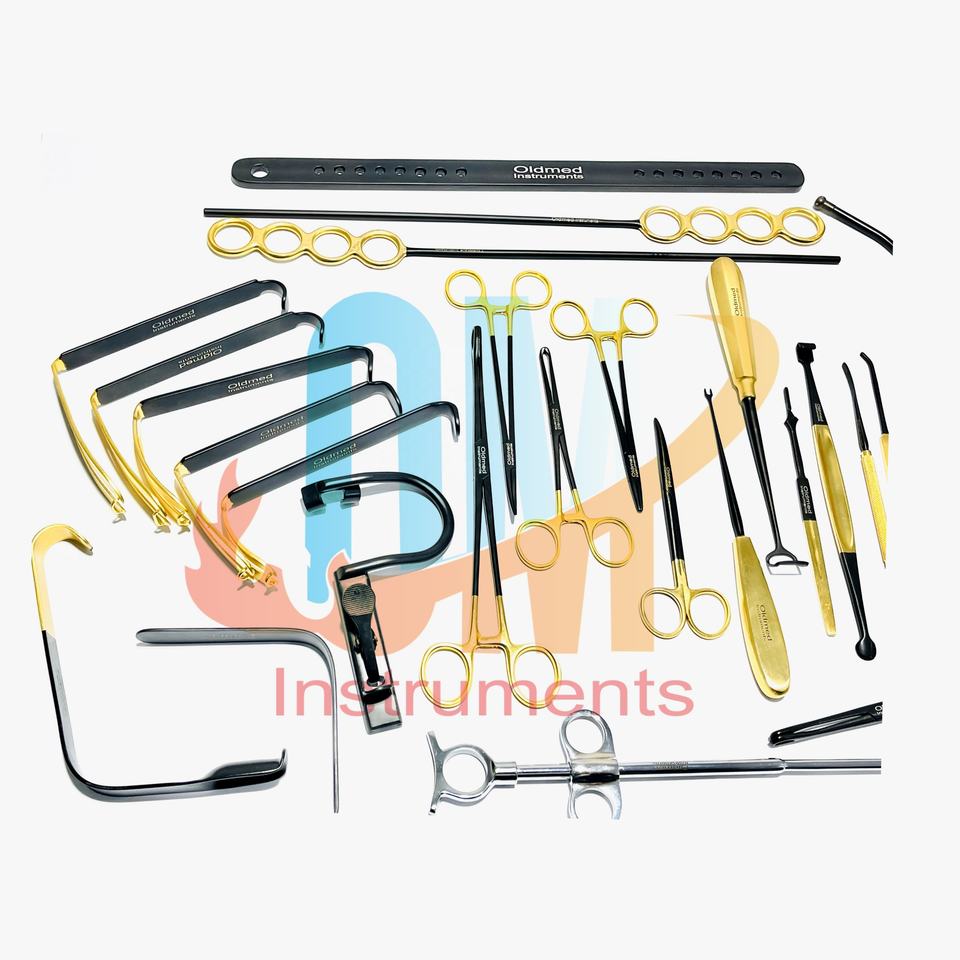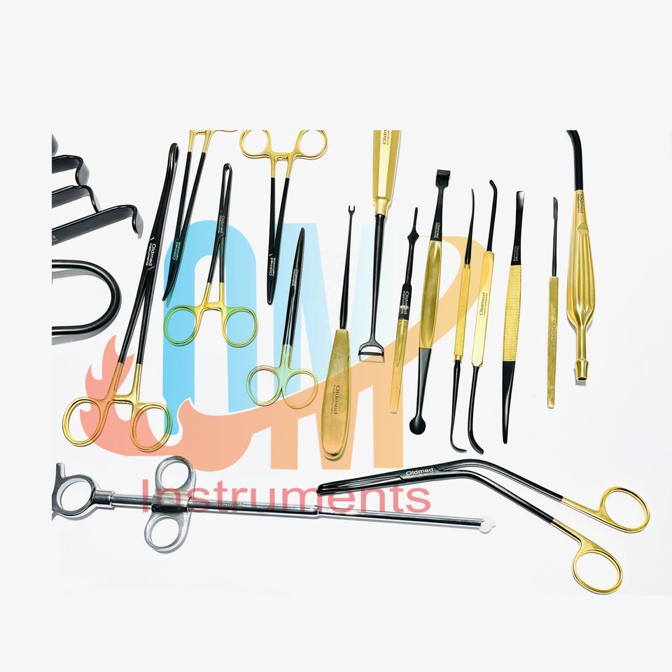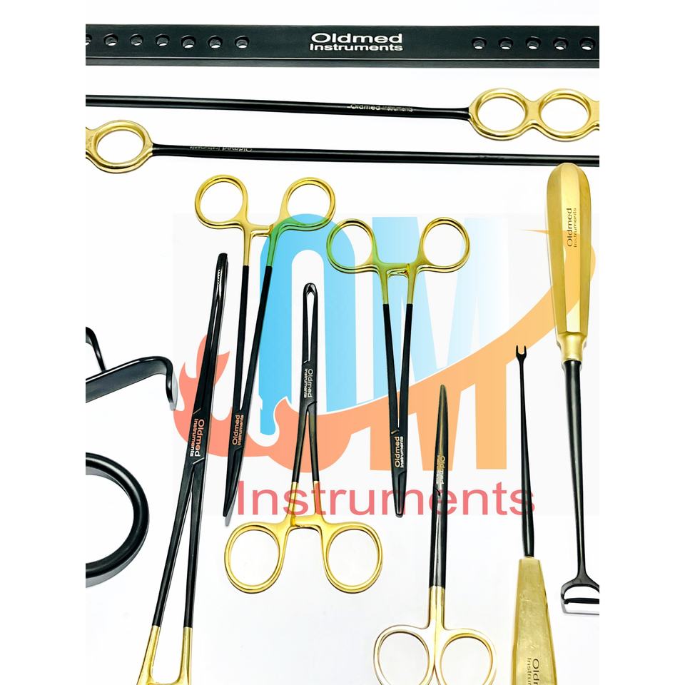 Amigdalectomía Adenoidectomía Juego de instrumentos quirúrgicos de 27 piezas Acero inoxidable de grado médico Recubierto de oro negro Reutilizable Premium