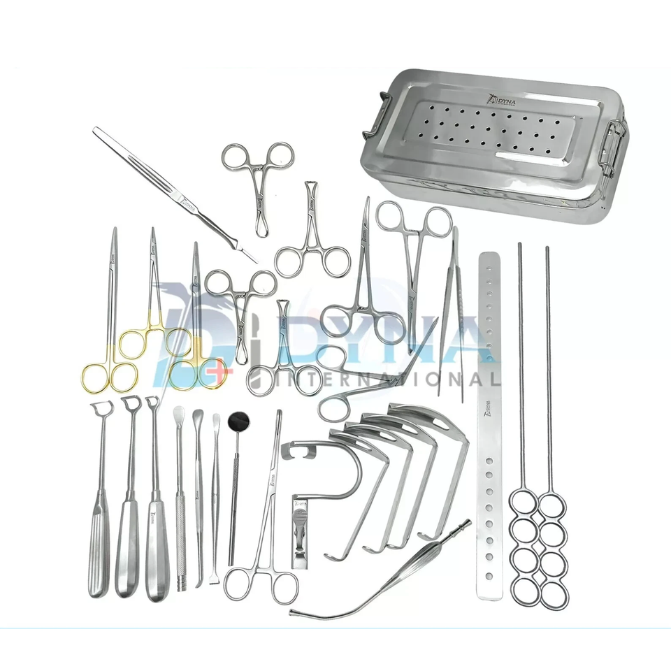 Juego completo de Cirugía de amígdalas y adenoides, 22 piezas con caja, instrumentos reutilizables con certificación CE