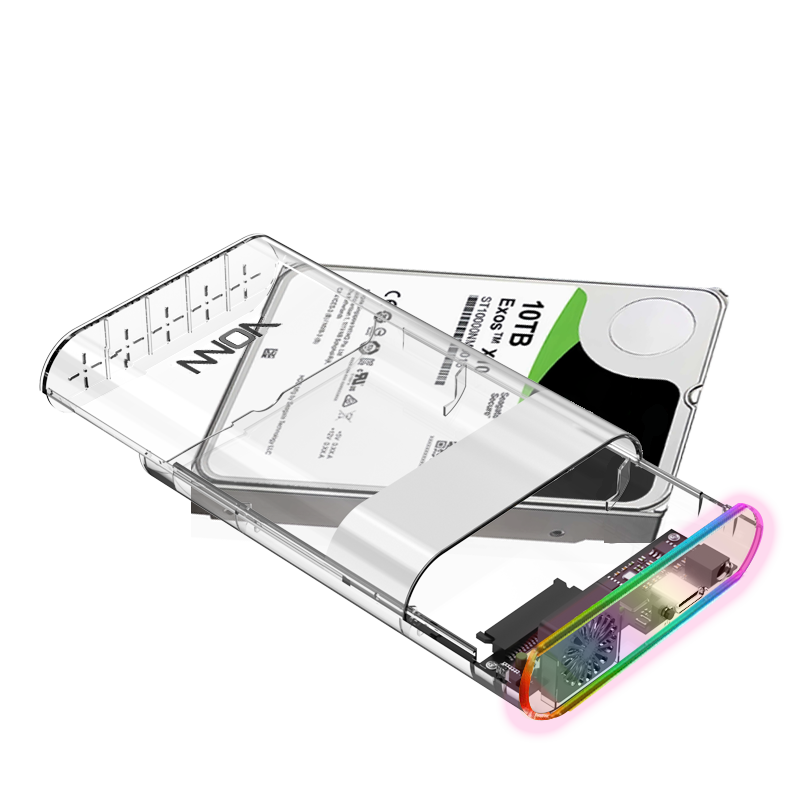 Herramienta libre tipo C 2,5 3,5 pulgadas HDD carcasa USB3.0 unidad externa caja de disco duro deslizante transparente RGB ventilador de refrigeración para PC portátil