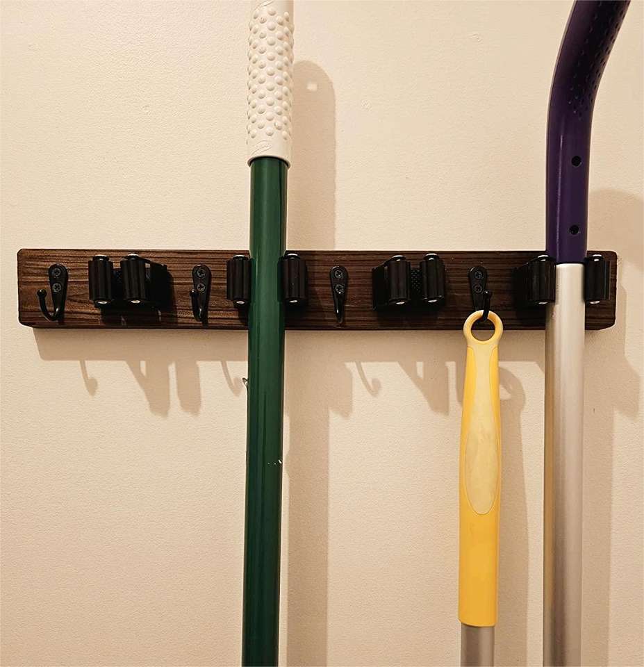 Nombre:Montaje en pared de madera escoba Mop Hanger