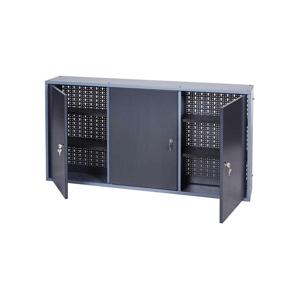 Armario de herramientas H600xW1200xD200 mm acabado martillo plata antracita 3 perf. Paneles traseros, 3 puertas