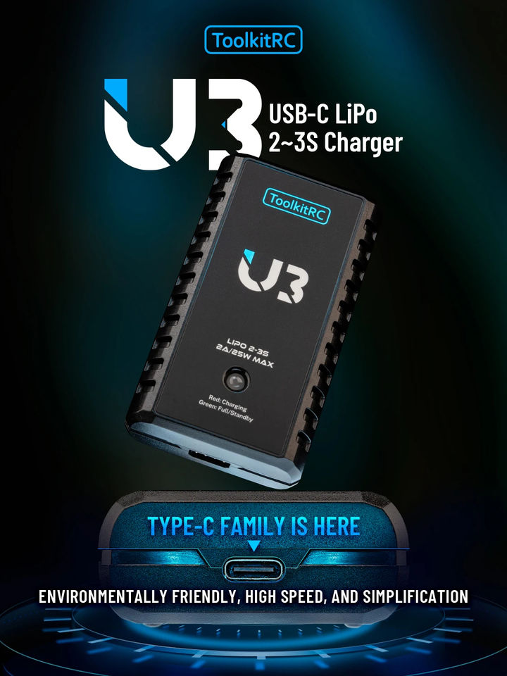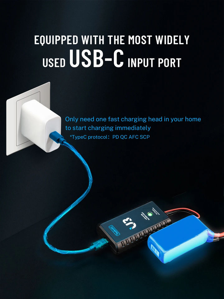 U3 2-3S LiPo UN3 4-8S USB-C NiMh Battery ChargerDescripción