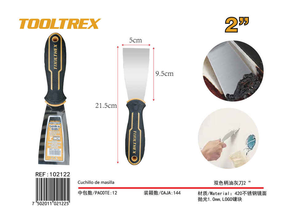 Espátula de construcción Tooltrex de 5 pulgadas con hoja recta de acero inoxidable 420 y mango compuesto para aplicaciones de bricolaje