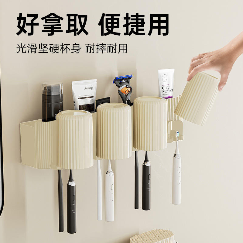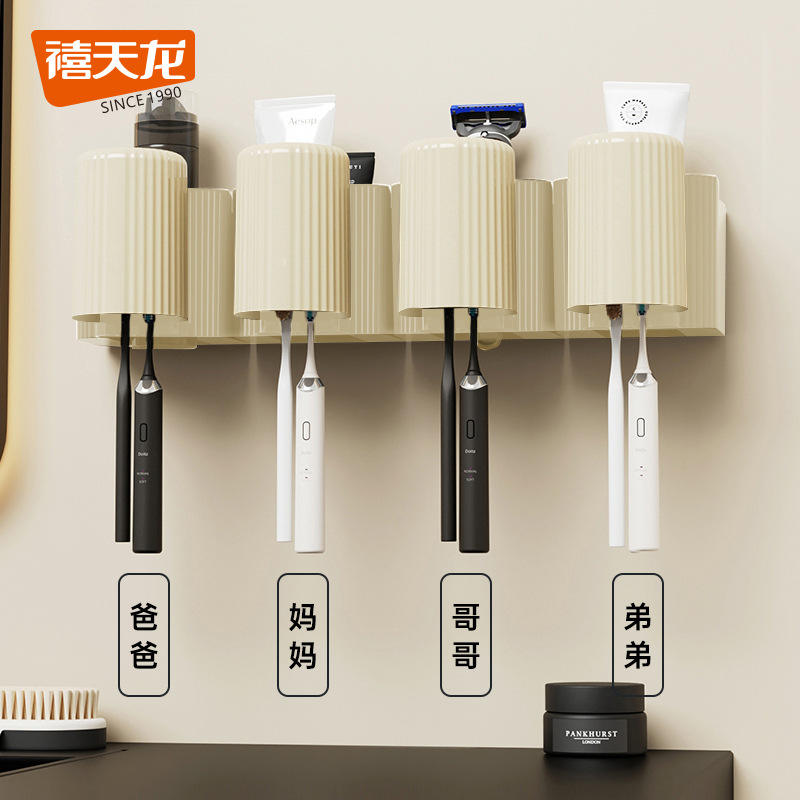 Soporte para cepillos de dientes montado en la pared, rectangular, para tres personas, sin taladro, fácil de limpiar, estante de almacenamiento para baño
