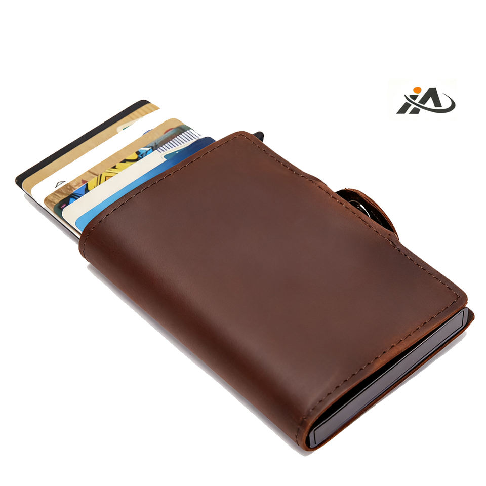 Estuche para tarjetas emergentes con botón superior Bloqueo RFID Cartera emergente minimalista Estuche para tarjetas de crédito de metal de aluminio con compartimento para billetes