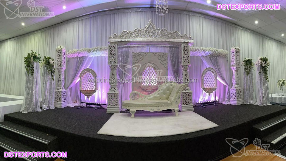 Decoración de ensueño, evento de boda, gran escenario, temática blanca, Gran recepción, escenario, Maharani