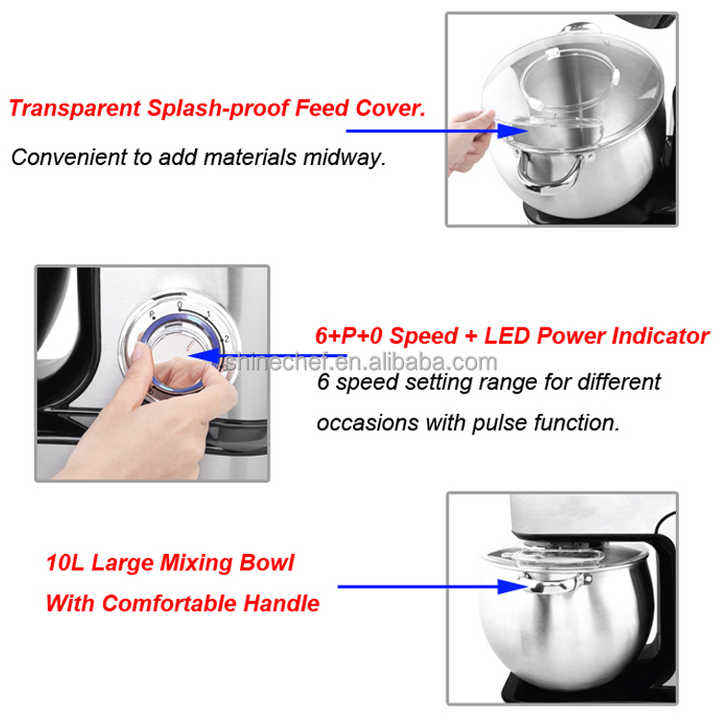 Top Chef Cake Mixer 10 cuartos Batedeira Commercial Bread Stand Mixer para hornear 110V Mini Dough Robot Patissier Mezcladores de alimentos