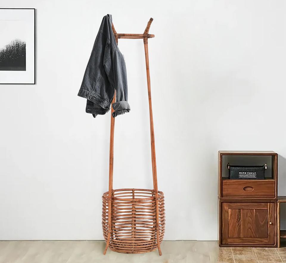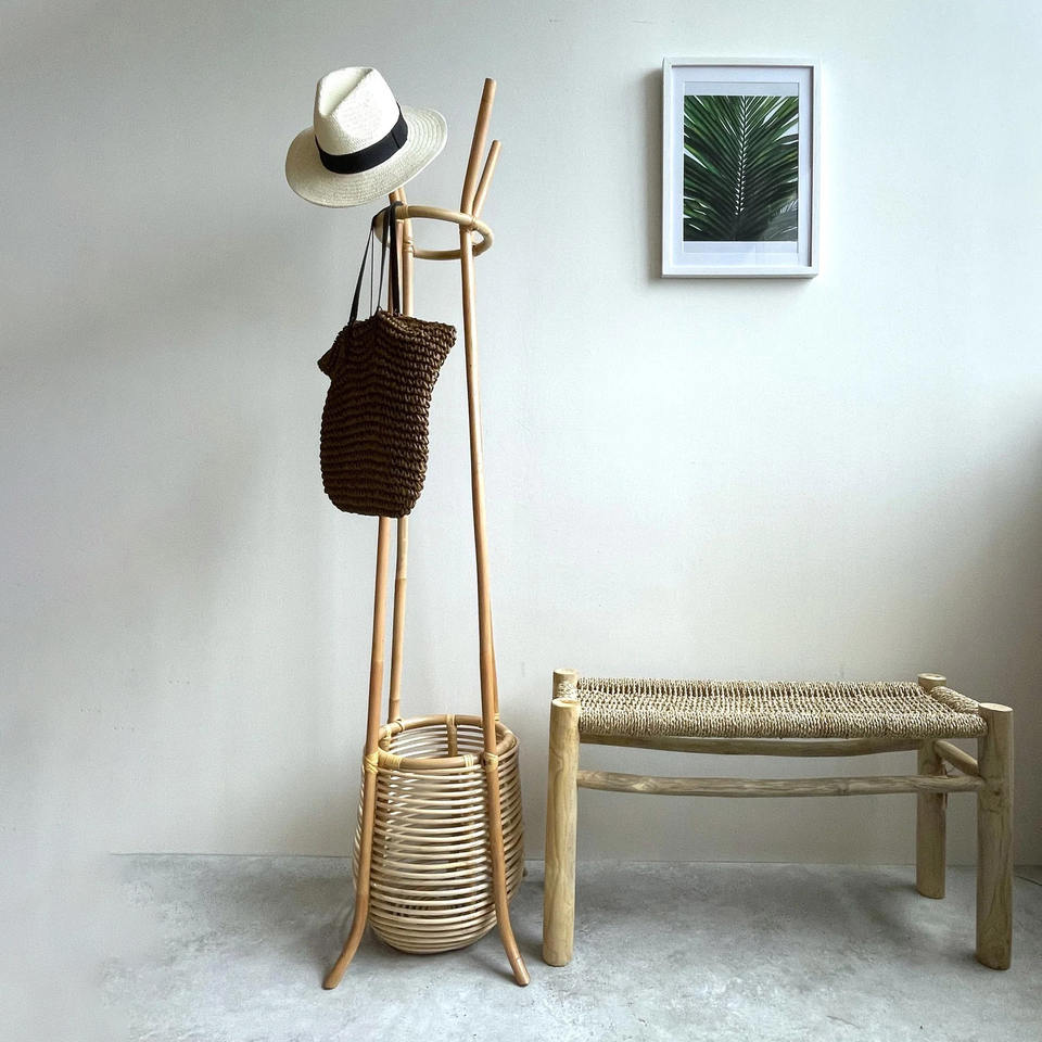 Rattan coat rack