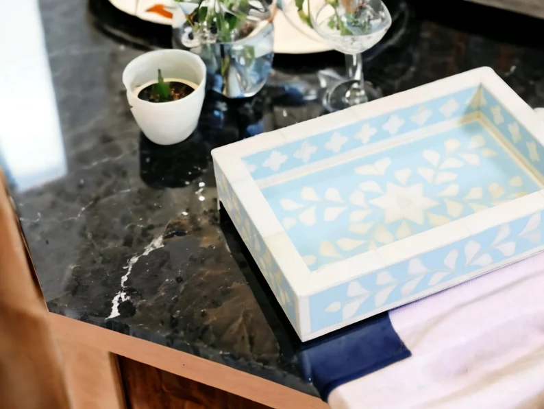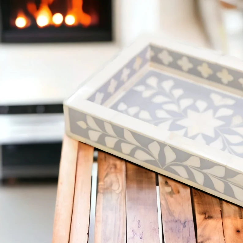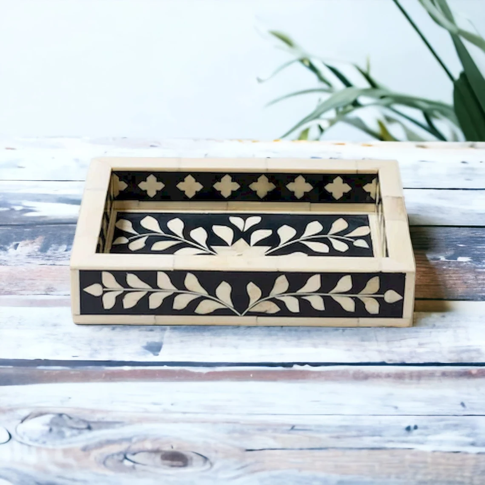 Bandeja Decorativa de Primera Clase con Incrustaciones de Hueso Estilo Art Deco para Mesa de Centro, Calidad Superior, India