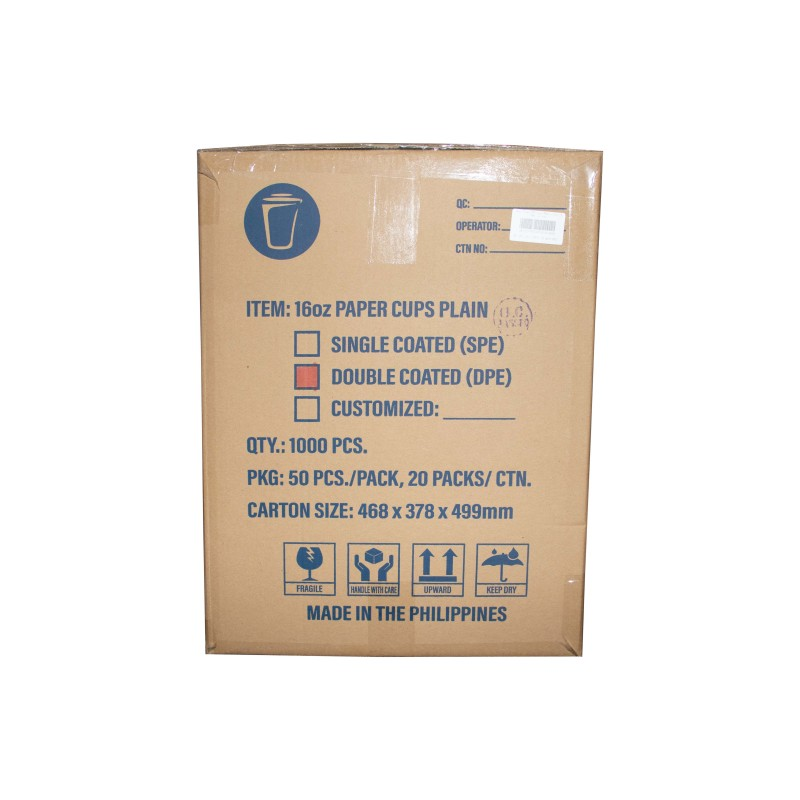 Taza de papel de PE doble Lisa desechable con revestimiento impermeable de 16oz de alta calidad de primera clase, tazas de café de papel para bebidas calientes de Filipinas