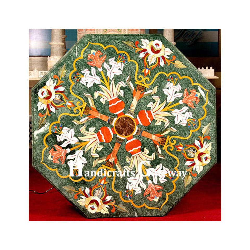 Mesa de comedor con diseño de incrustaciones de flores de colores mezclados de mármol verde de calidad estándar de forma octogonal de clase superior