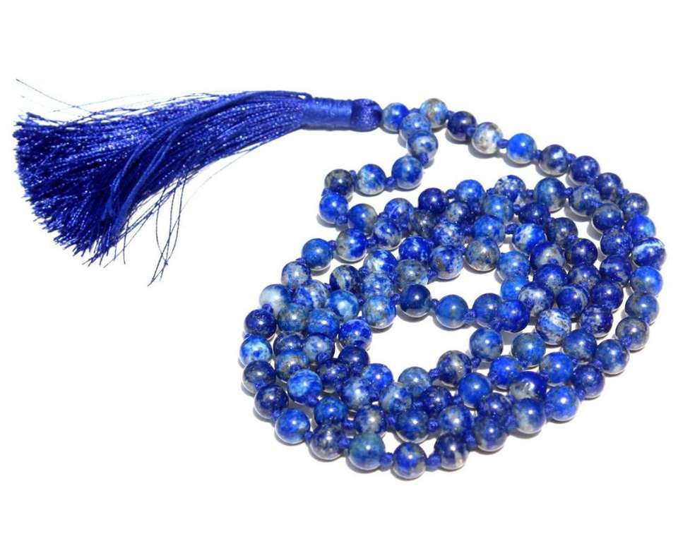 Collar largo con cuentas de lapislázuli para mujer, Gargantilla con gemas de Color Denim, 108 cuentas, hecho a mano