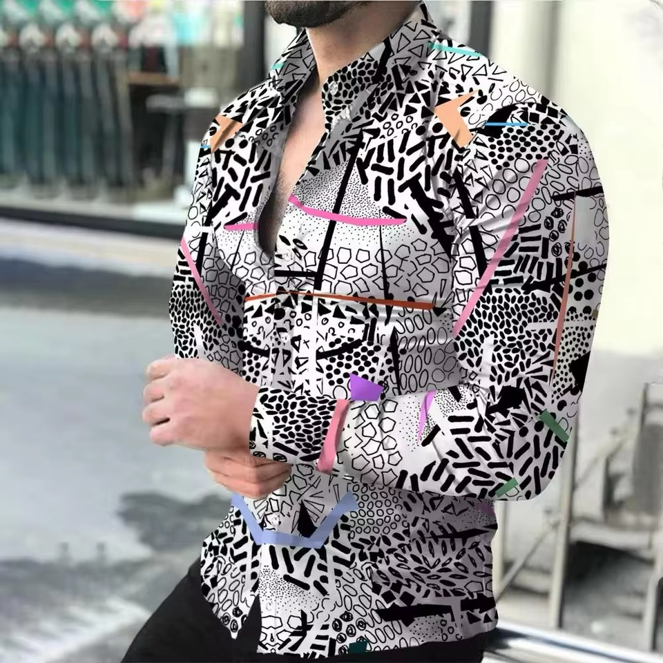 Camisa de Manga Larga para Hombre, Estilo Triple Botonadura, Estampado Floral de Moda Personalizado, 100% Algodón, Transpirable, Ecológica, Antiarrugas, para Otoño